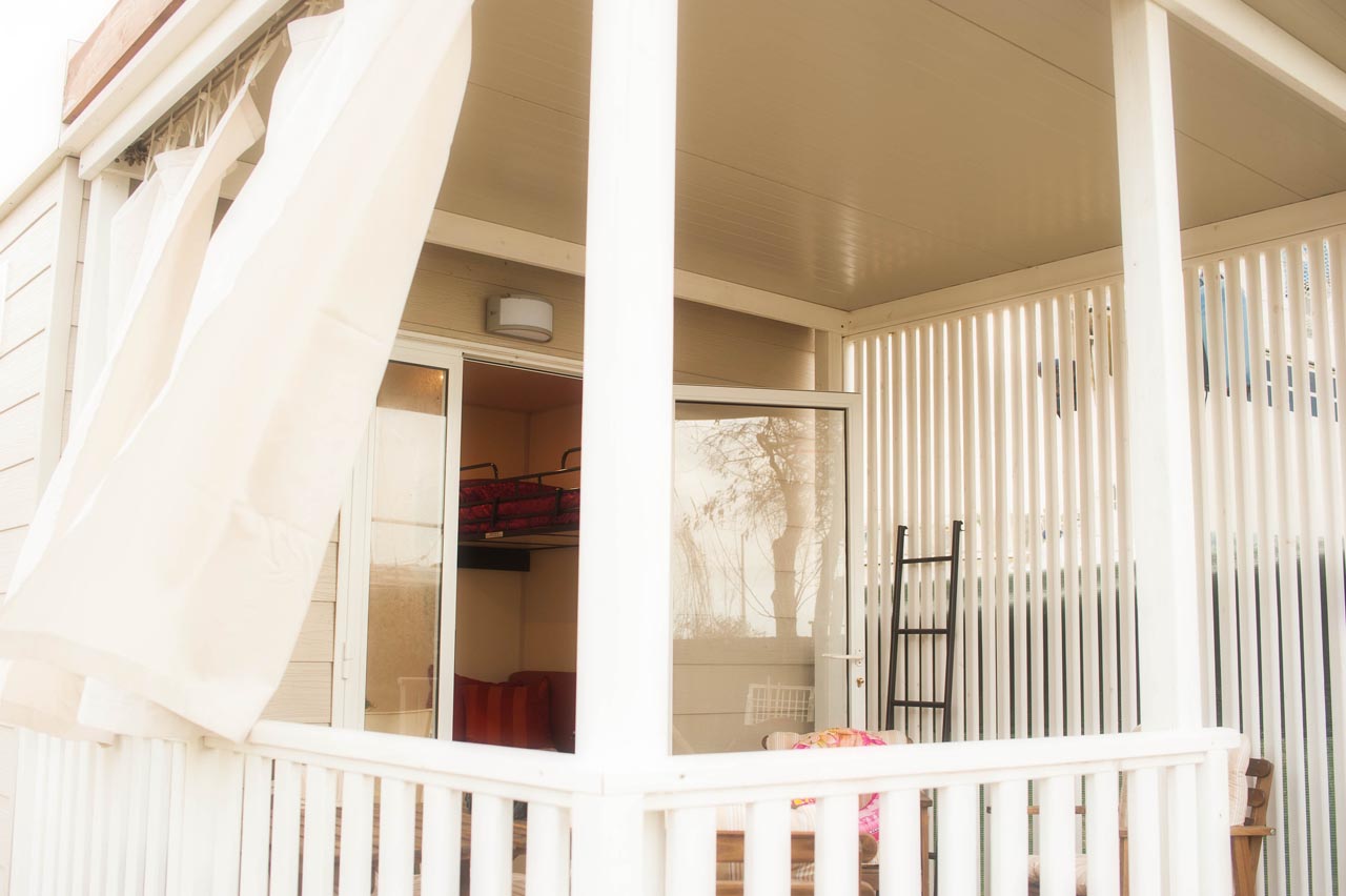 Bungalow con 5 posti letto composti da camera matrimoniale, cameretta, soggiorno con angolo cottura, bagno con doccia e veranda recintata con cancellino.